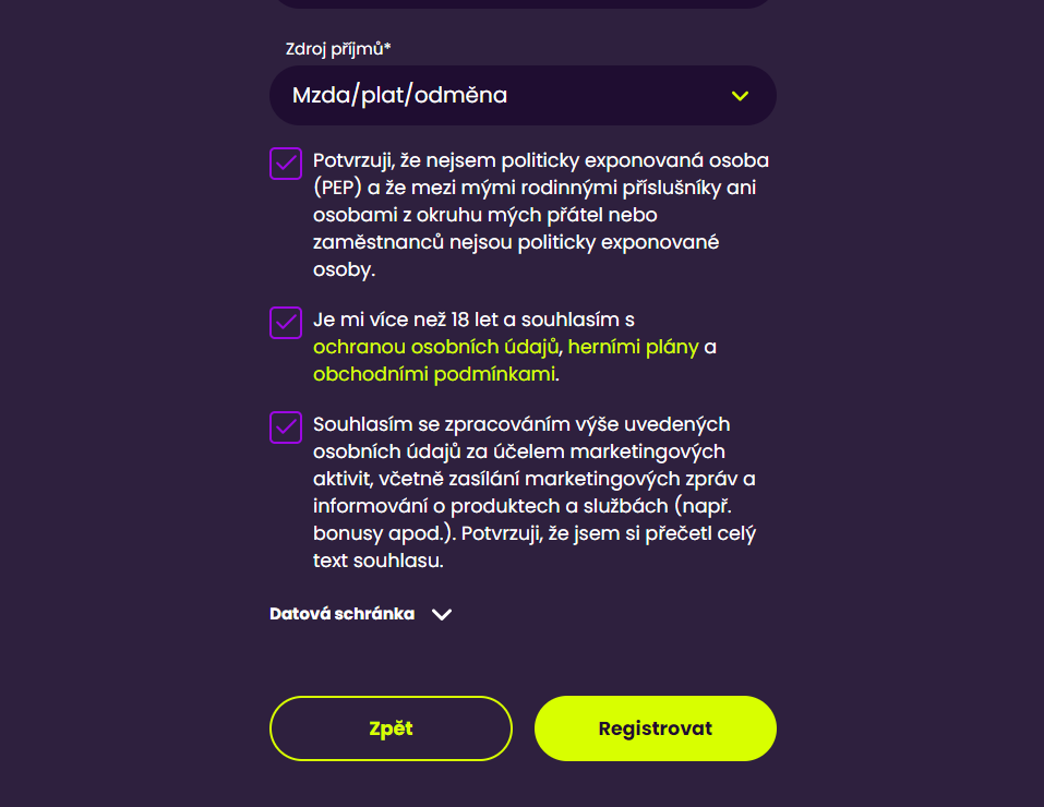 - Nepatřím mezi politicky exponované osoby (PEP) a nepatří mezi ně ani moji rodinní příslušníci, přátele nebo zaměstnanci.