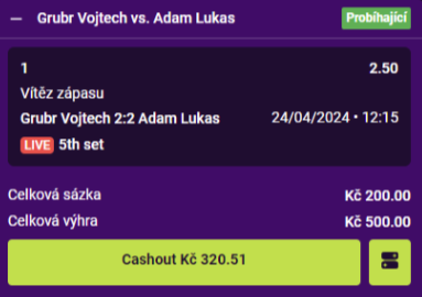 Cashout je ve světě sportovního sázení známá věc. Umožní ti vybrat částku ještě před koncem příležitosti, která byla přidána na tvůj tiket.