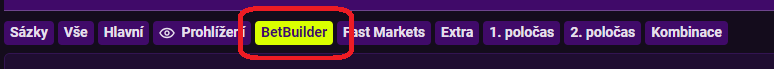 BetBuilder najdeš v kolonce mezi ostatními druhy sázek, hned pod hlavní lištou s informacemi o duelu.