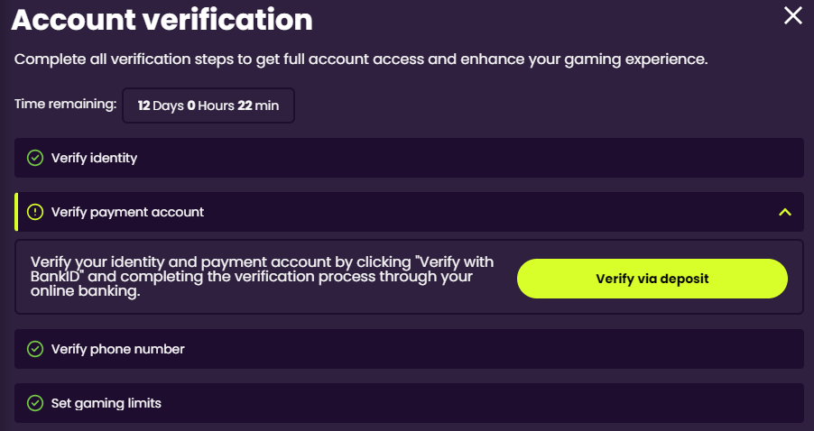 If you have successfully confirmed your identity using Bank ID, your payment method will be automatically verified.