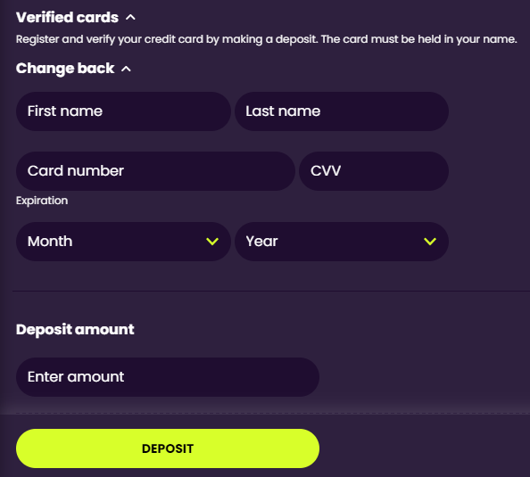 - Click the "Deposit" button and choose a payment method you want to verify