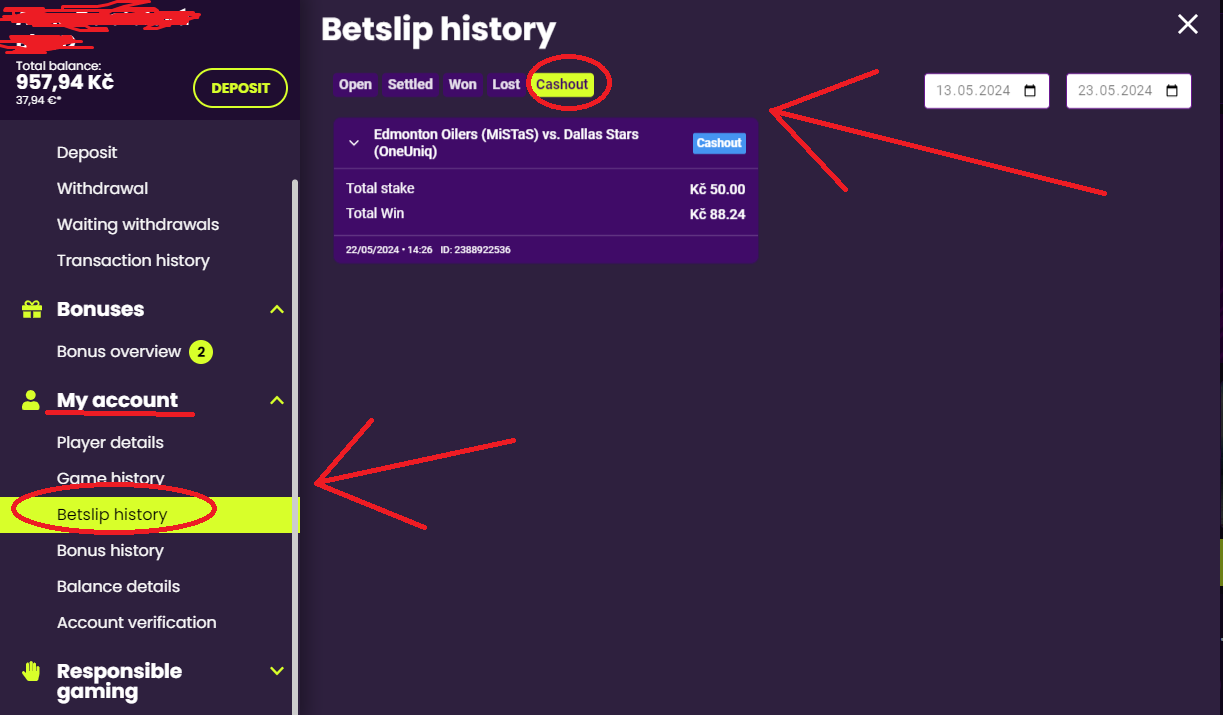 You can find all your settled Cashouts on your account in the "Betslip history" section.