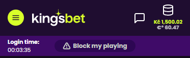 The application for registration in the RVO can also be made via the kingsbet.cz website, specifically via the "Block my playing" button in the upper part of the screen.